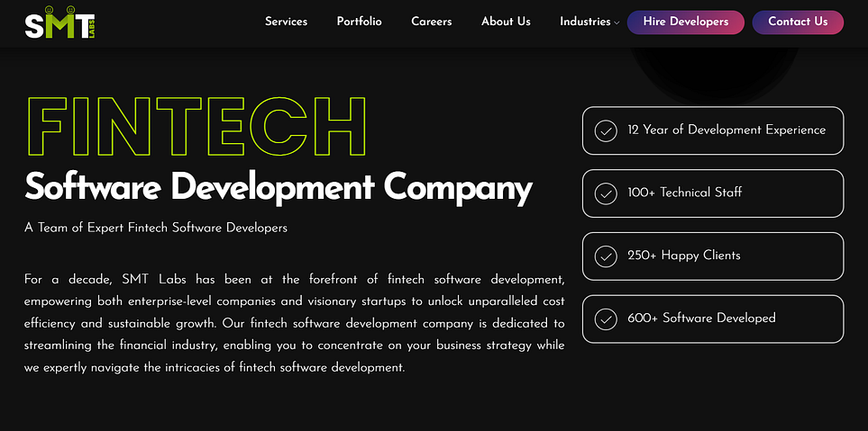 SMT Labs stands as a beacon of excellence in the realm of Fintech software development, with its headquarters based in Indore, India. With a well-established presence, they have garnered a reputation as one of the best in the industry. Their commitment to delivering cutting-edge solutions in the financial technology sector is underpinned by years of valuable experience and an impressive portfolio of successful projects. SMT Labs’ expertise transcends the boundaries of conventional financial software development, offering innovative and tailored solutions that cater to the unique needs of clients globally. Their dedication to excellence, unwavering commitment to quality, and an agile approach to technology make them a trusted partner for businesses seeking to navigate the ever-evolving landscape of Fintech with confidence.