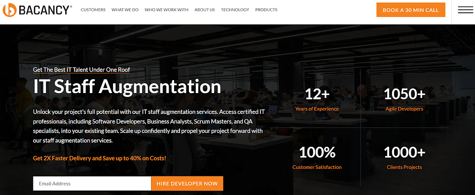 Bacancy Technology is considered one of the best staff augmentation firms offering staff augmentation and managed services to scale your internal development teams quickly in a minimal time, fulfilling your unique business requirements.