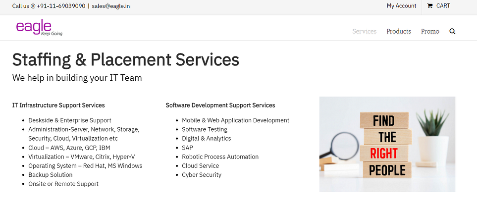Eagle provides staffing & placement services to the IT sector for hardware and software support across all locations in India. Their aim is to deliver the best resources within the time frame given by you at pricing that suits your requirements.